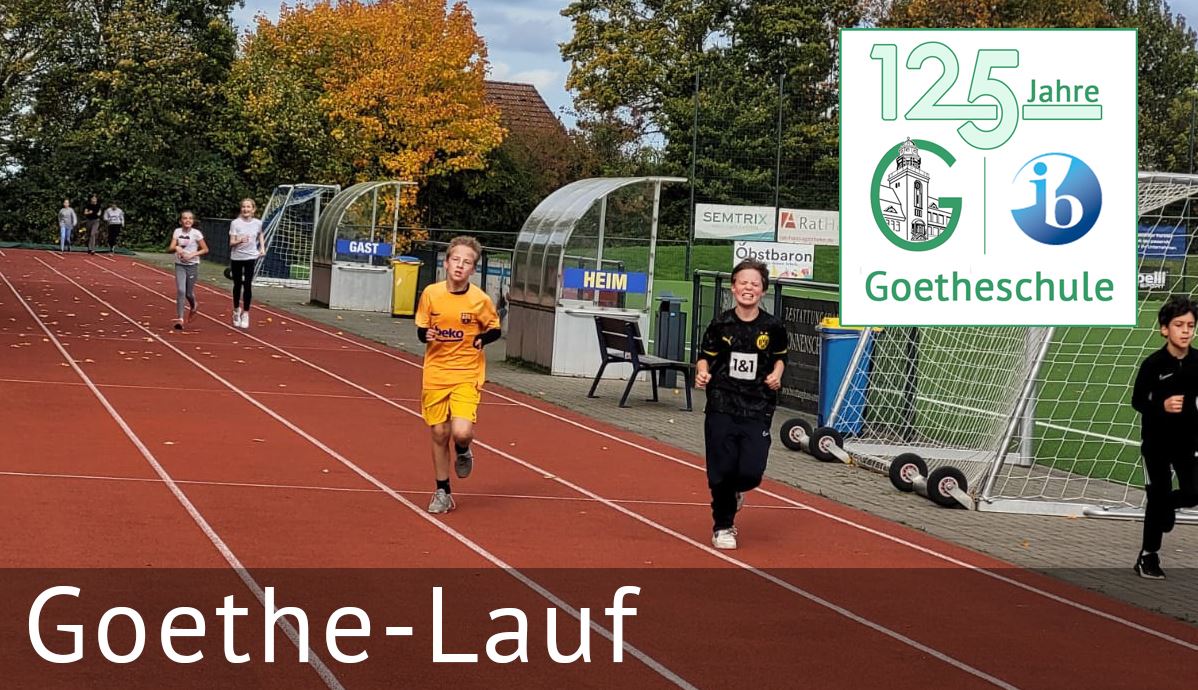 Am Schuljubiläum läuft die gesamte Schule für den guten Zweck. Die Strecke verläuft um das Schulgebäude herum. Schulleitung, LehrerInnen, SchülerInnen und Schulpersonal arbeiten als Team zusammen und versuchen jeweils in 30 Minuten gemeinsam so viele Kilometer wie möglich zu laufen. Der „Goethe“ – Lauf" ist ein Spendenlauf, der von SchülerInnen des Q1 Religionskurses organisiert wird. Das Geld soll den gemeinnützigen Essener Verein „Be strong for kids“ und unser Brasilienprojekt finanziell unterstützen.