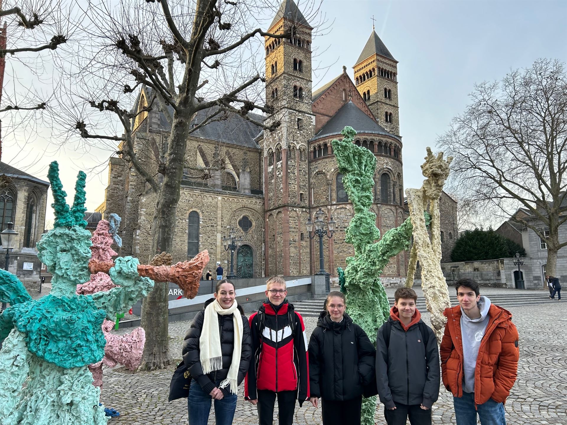 Bei der 28. Auflage des MMM (Internationaler Mathematik-Modellierungs-Wettbewerb Maastricht) am 27.01.24 erreichte das Team der Goetheschule nach dem Vorjahressieg mit Platz 4 erneut eine hervorragende Platzierung im erlesenen Teilnehmerfeld. Das Team, in diesem Jahr bestehend aus Anna, Jakub (beide Q1), Alexandra, Nick und Gergely (alle Q2) und begleitet von Mathematiklehrer Martin Brüning, verpasste beim Sieg der Europäischen Schule Brüssel (Belgien) das "Treppchen" nur denkbar knapp.