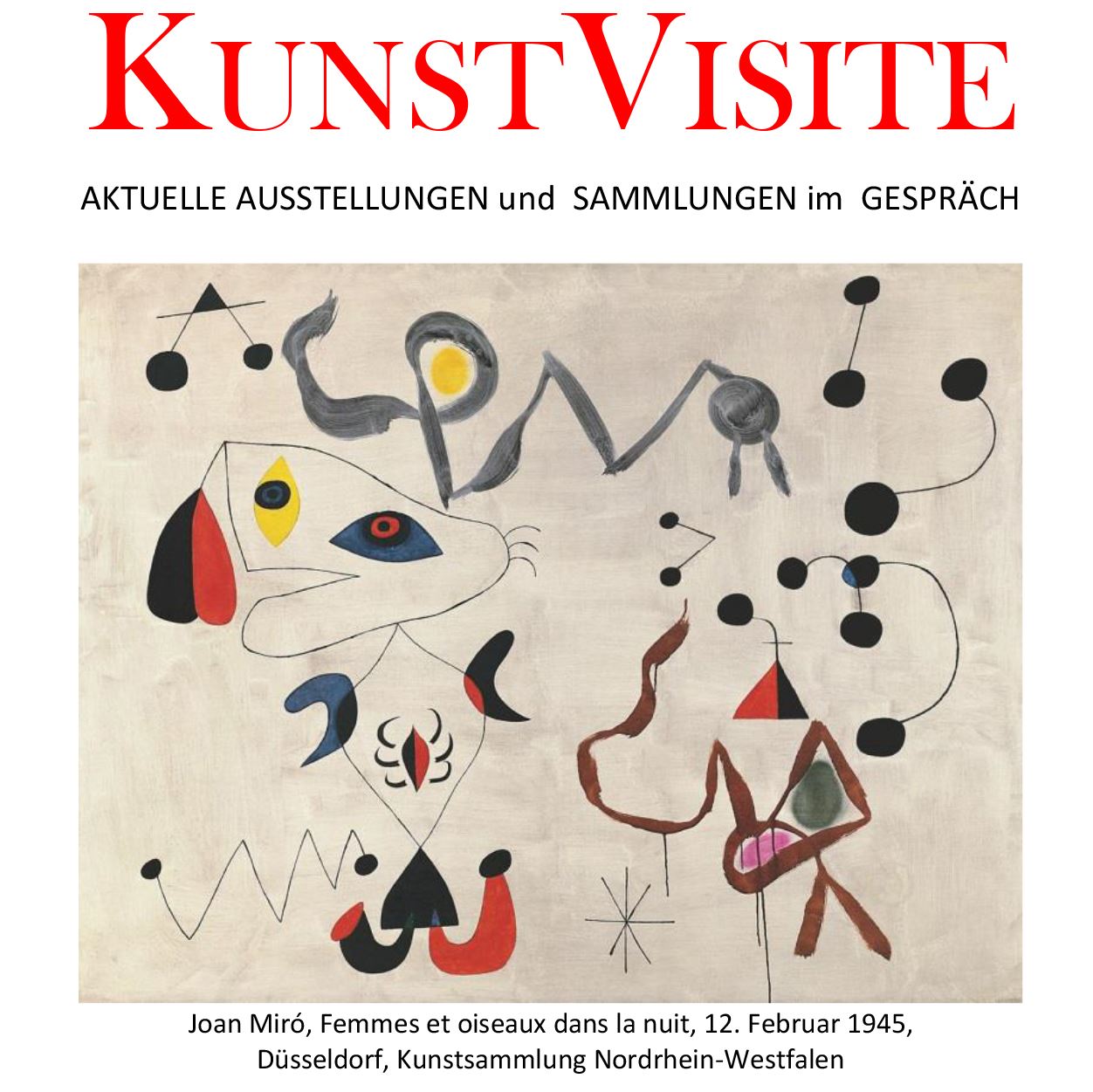 Am Dienstag, 23. Juni, findet eine KUNSTVISITE in der Aula statt. Aus Anlass der Ausstellung "Miró Malerei als Poesie" in der Kunstsammlung Nordrhein-Westfalen K20 in Düsseldorf wird Helmut C. Jacobs, Professor für spanische Literatur- und Kulturwissenschaft an der Universität Duisburg-Essen, das Verhältnis von Joan Miró zu seiner heimischen, katalanischen Literatur und Kultur beleuchten und seine spezifische Bildsymbolik erklären. Aus seinem literarischen Interesse entwickelte Joan Miró eine Bildwelt mythischer Zeichen, stand in Frankreich mit Dichtern seiner Zeit in regem Austausch und wurde zu einem wichtigen Vertreter des abstrakten Surrealismus.