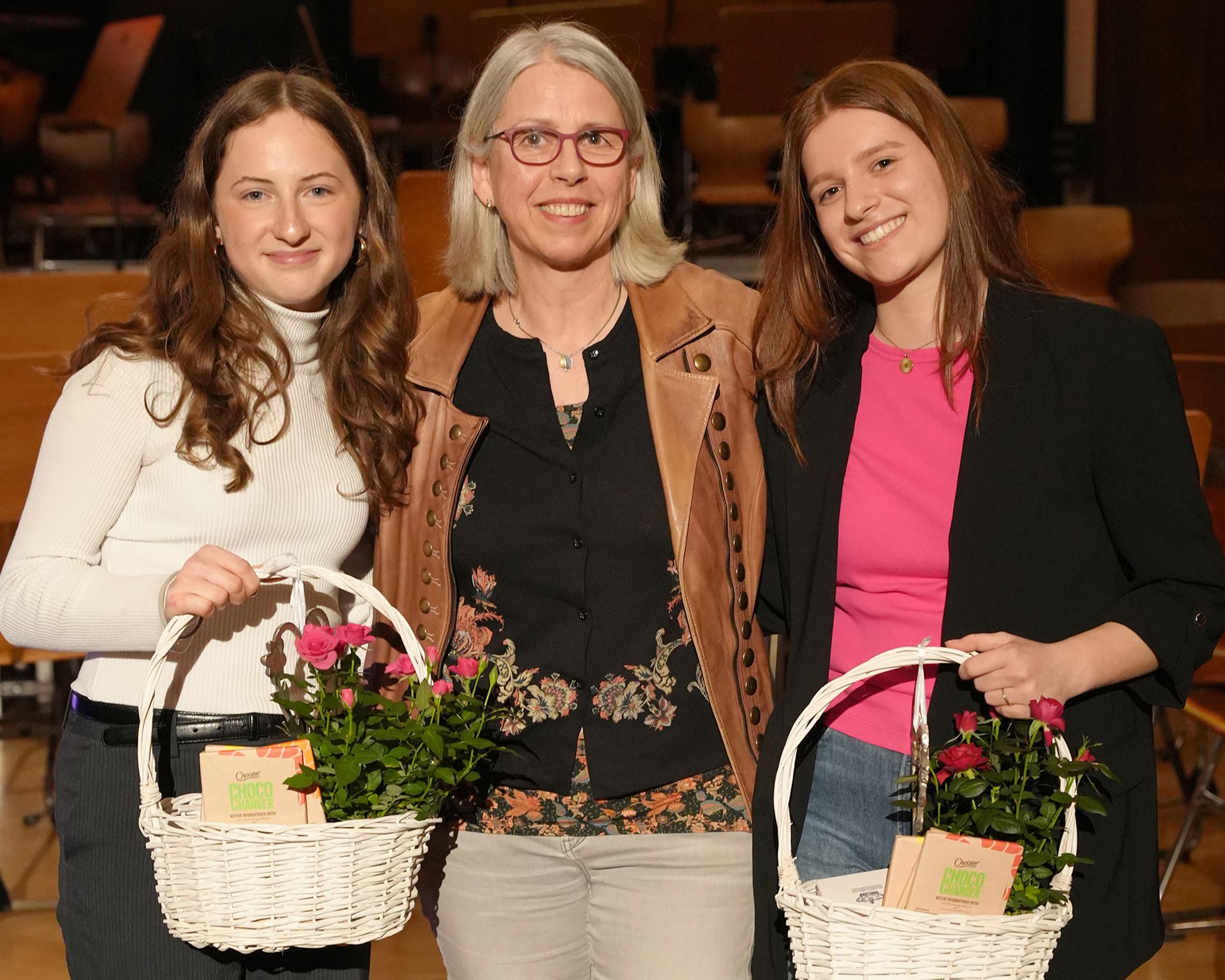 Danach feiern wir mit Schülerinnen und Schülern der Goetheschule, des Gymnasiums Nord-Ost und der Frida Levy-Gesamtschule eine besondere Auszeichnung. Der Young Women in Public Affairs Award wird jährlich von ZONTA vergeben, einem weltweiten Zusammenschluss berufstätiger Frauen. Unter den vier Preisträgerinnen sind in diesem Jahr auch die beiden Präsidentinnen unseres Nachhaltigkeitsclubs, Marlene (Q1) und Pauline (Q2).
