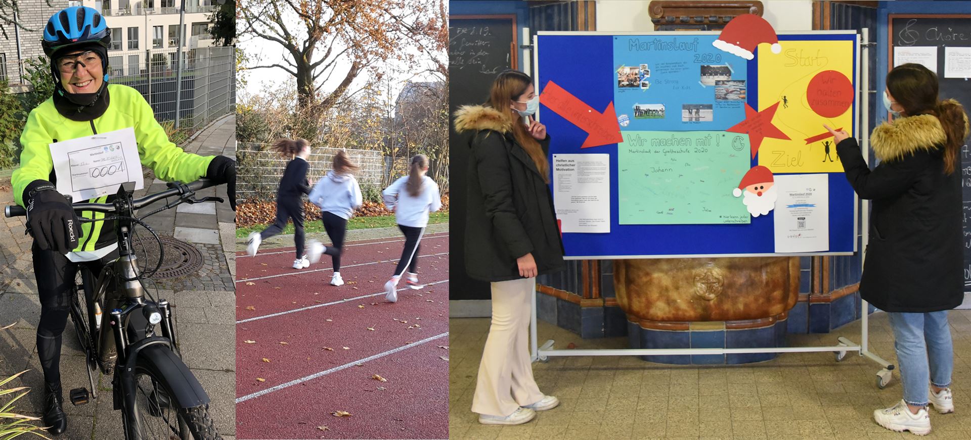 Wir danken allen Schülern und Lehrern, die bereits mit vollem Engagement am Martinslauf aktiv teilgenommen haben. Mit der Nummer 0001 startete Frau Zywietz-Godland symbolisch unseren Lauf und fuhr 51 km mit dem Fahrrad. Wer noch nicht gelaufen ist, kann dies noch bis zum Nikolaus-Tag nachholen. Entscheidend ist weder die Streckenlänge noch der erlaufene Betrag, sondern dass möglichst viele Einsatz zeigen. Zum Dank erhält jeder am Ende eine Teilnahmeurkunde. Alle Infos zum Lauf befinden sich weiter unten auf der Startseite.