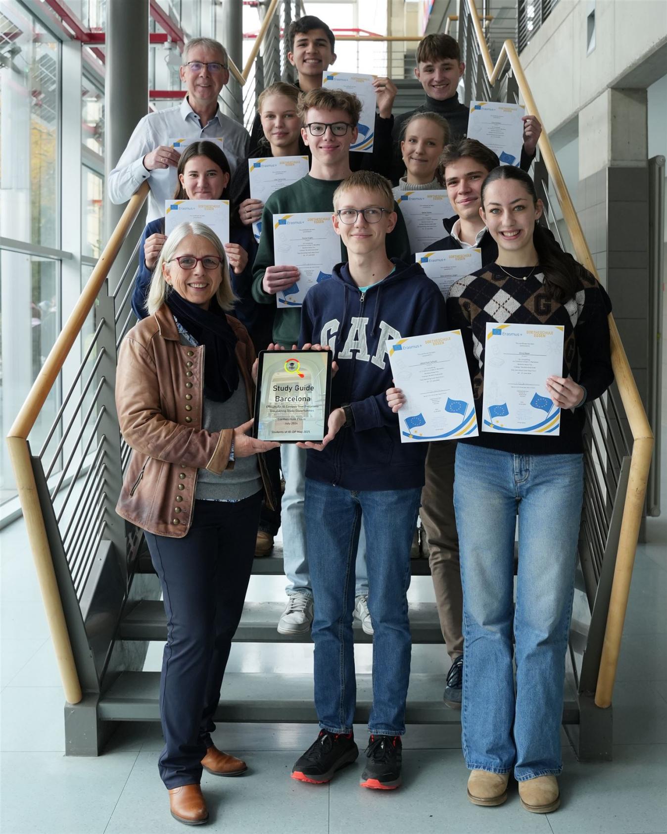 Im Rahmen eines Erasmus-Projekts verbrachten einige Schülerinnen und Schüler der Goetheschule im Juni vier Tage in Barcelona. Neben dem deutschen Abitur ist ihr Ziel, im nächsten Jahr mit dem International Baccalaureate ein zweites Diplom zu erwerben. In diesem Rahmen wird jährlich eine Campus Tour in eine europäische Studienstadt unternommen. Die Schülerinnen und Schüler untersuchten im Juni gemeinsam mit Lernenden ihrer Erasmus-Partnerschule in Barcelona die vielfältigen Aspekte einer Studienstadt. Das Ergebnis ist der digitale Studienführer „Study Guide Barcelona“, der kostenlos online abgerufen werden kann.