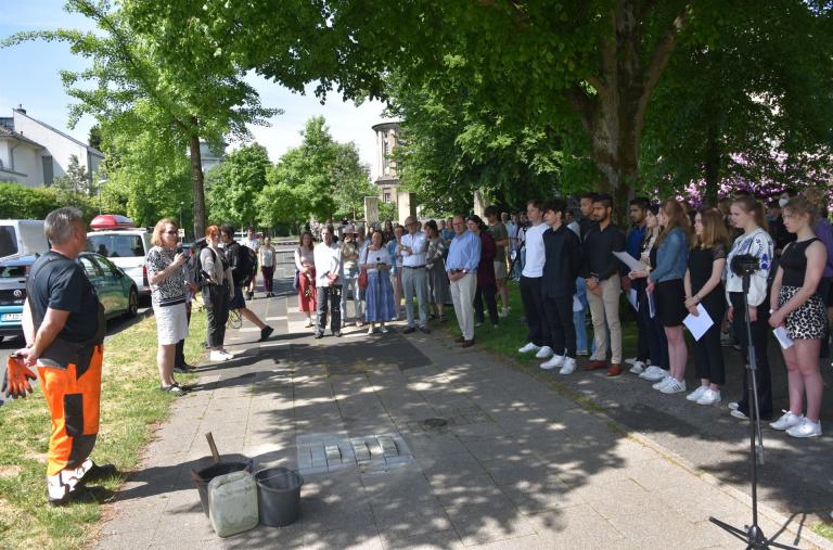 Das im Jahr 1992 gestartete Projekt „Stolpersteine“ stammt von dem Künstler Gunter Demnig und soll europaweit an die zu der Zeit des Nationalsozialismus verfolgten, deportierten und ermordeten Menschen erinnern. Die Stolpersteine werden in Form von quadratischen Gedenktafeln aus Messing mit den Namen der vom Terrorregime der Nationalsozialisten verfolgten Menschen, ihren Geburtsdaten und den Daten und Orten der Verfolgung und Ermordung meist vor den letzten frei gewählten Wohnstätten dieser in den Boden eingelassen. In einigen Fällen werden die Stolpersteine auch vor den von den Deportierten besuchten Schulen verlegt.