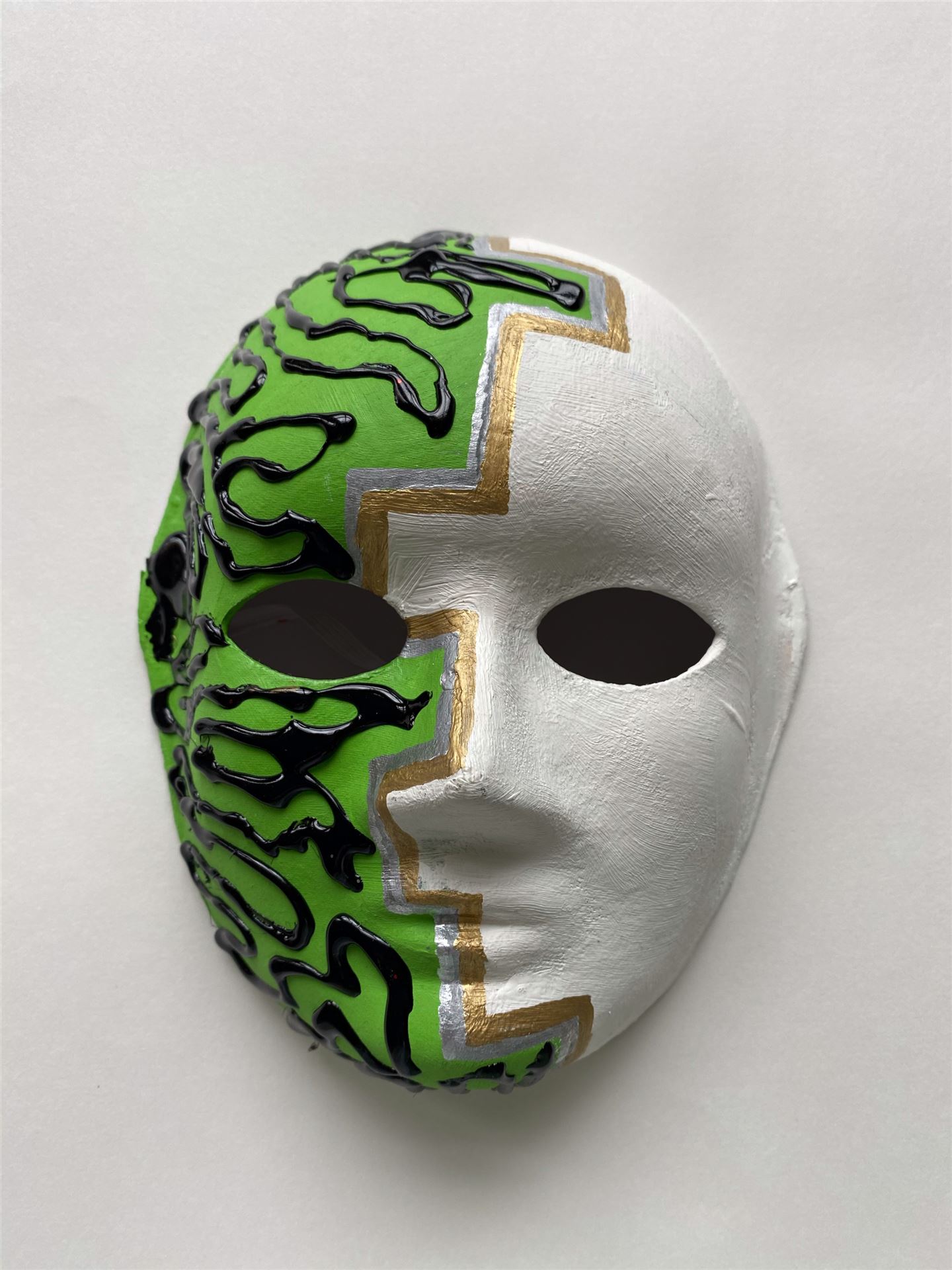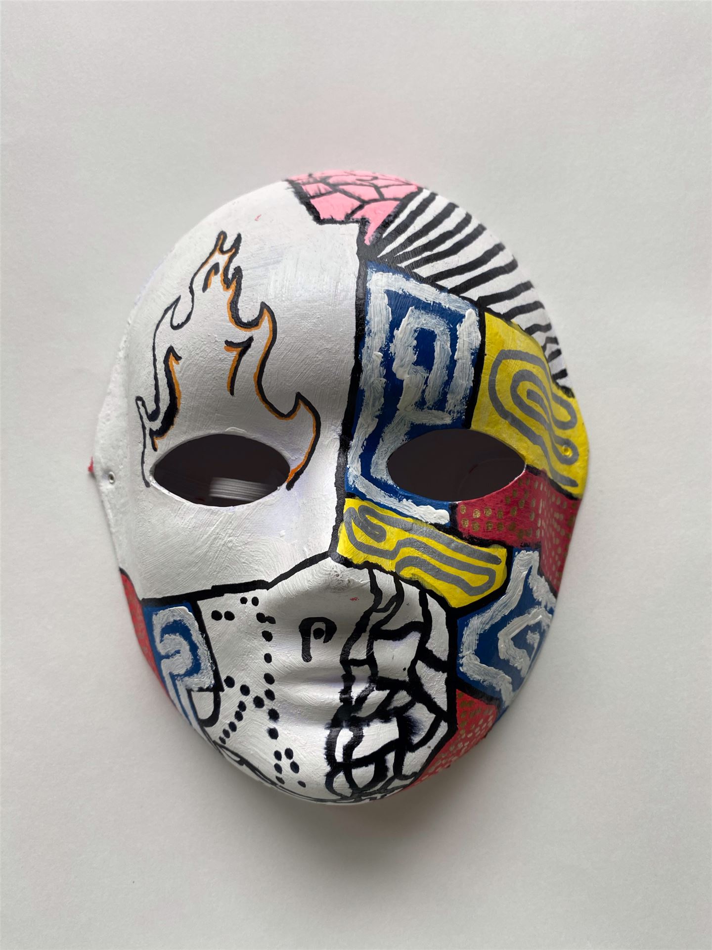 Aus der Bearbeitung der Graffiti Kunst entstand die Idee, sich mit der Anonymität hinter einer Maske auseinanderzusetzen. Die SuS lernten kulturelle Bezugspunkte der Gesichtsmaskierung aus der Kunstgeschichte kennen und übertrugen einzelne Formen und Funktionen auf die eigene Gestaltung.