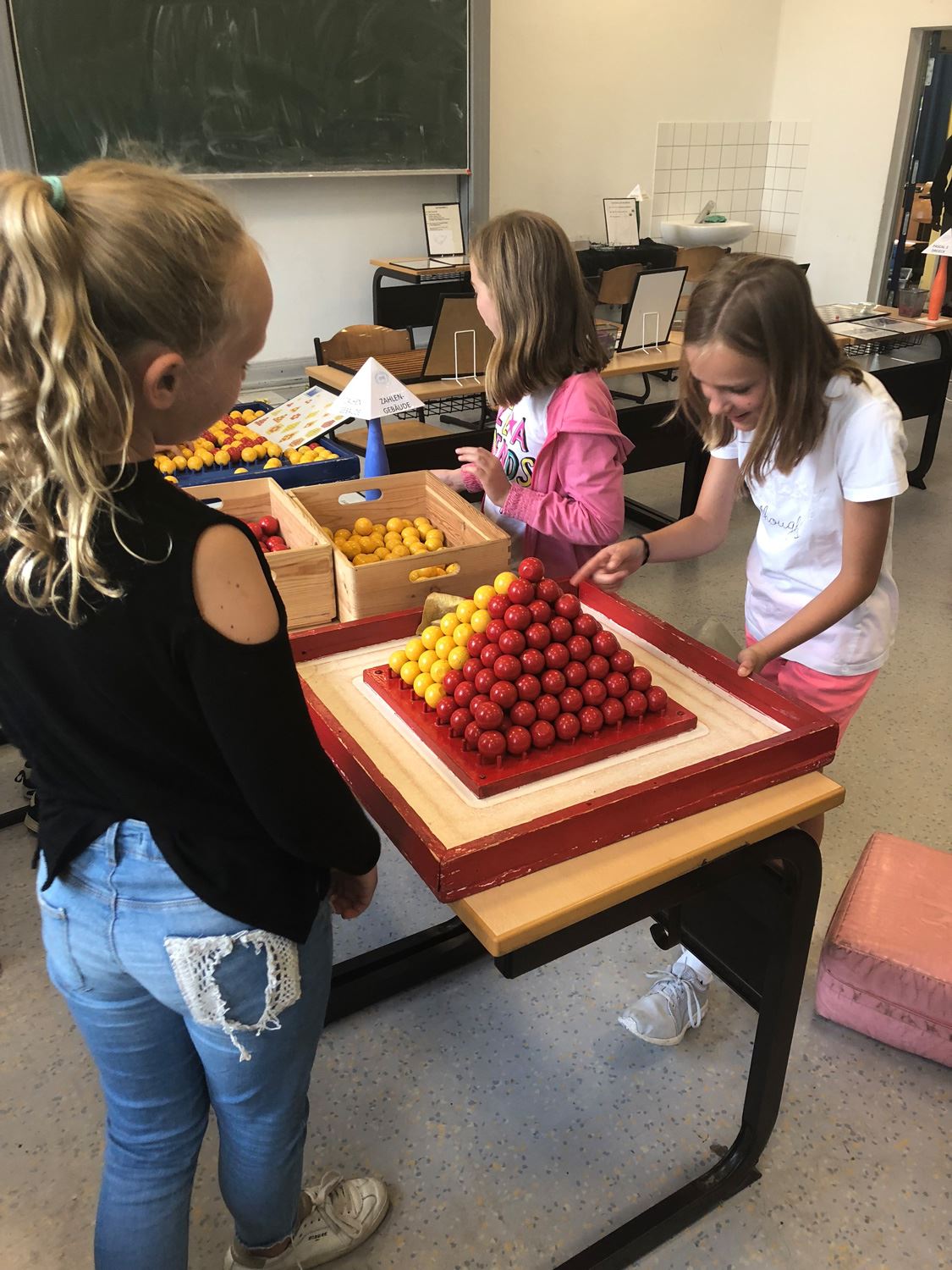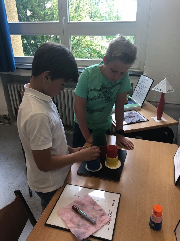 Am Ende der Doppelstunde wird für manche die Zeit ein wenig knapp, auch die letzten Aufgaben noch abzuschließen, weil sie kaum bemerkt haben, wie schnell zwei abwechslungsreiche, praktische Stunden voller Mathematik abgelaufen sind.
