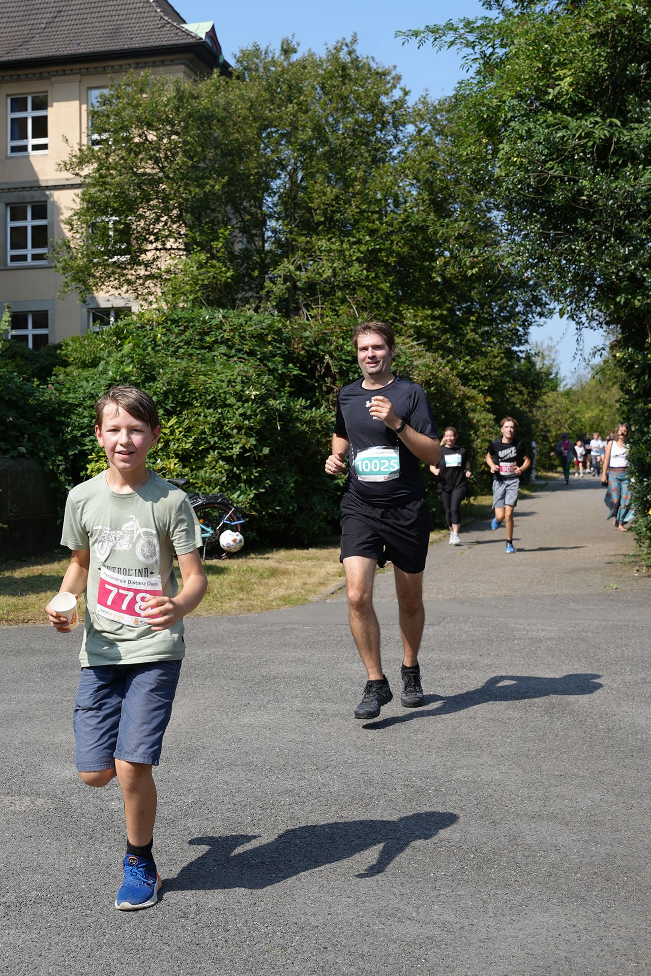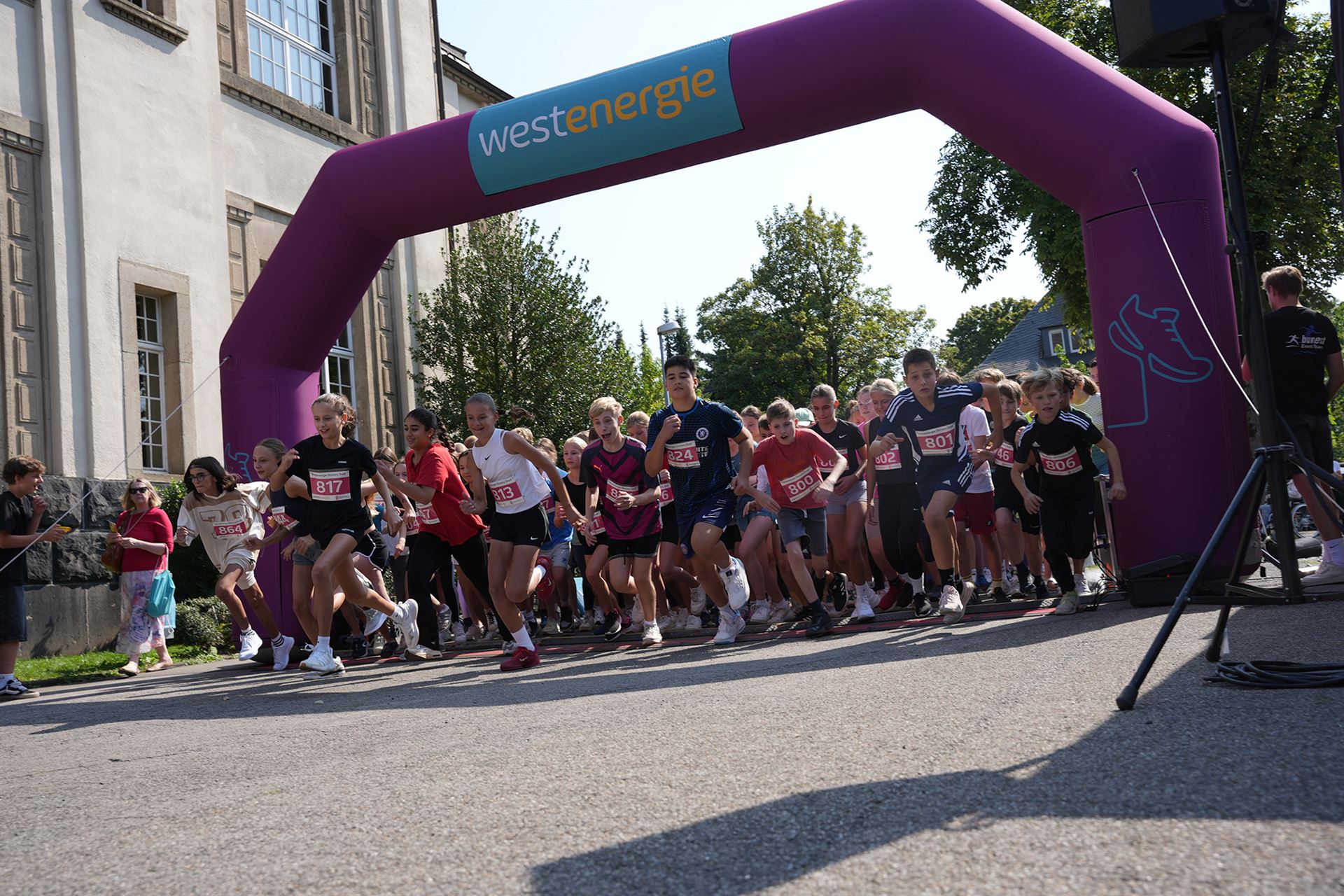 Während des gesamten Schulfests über kam es zu einem Wechsel des Bühnenprogramms und dem Programm rund um den Start und Zieleinlauf des „Westenergie Distanz Duells“. Dieser befand sich in der Nähe der Tischtennisplatten auf dem Schulhof. Der gesamte Lauf wurde großartig durch das Westenergie-Team moderiert.