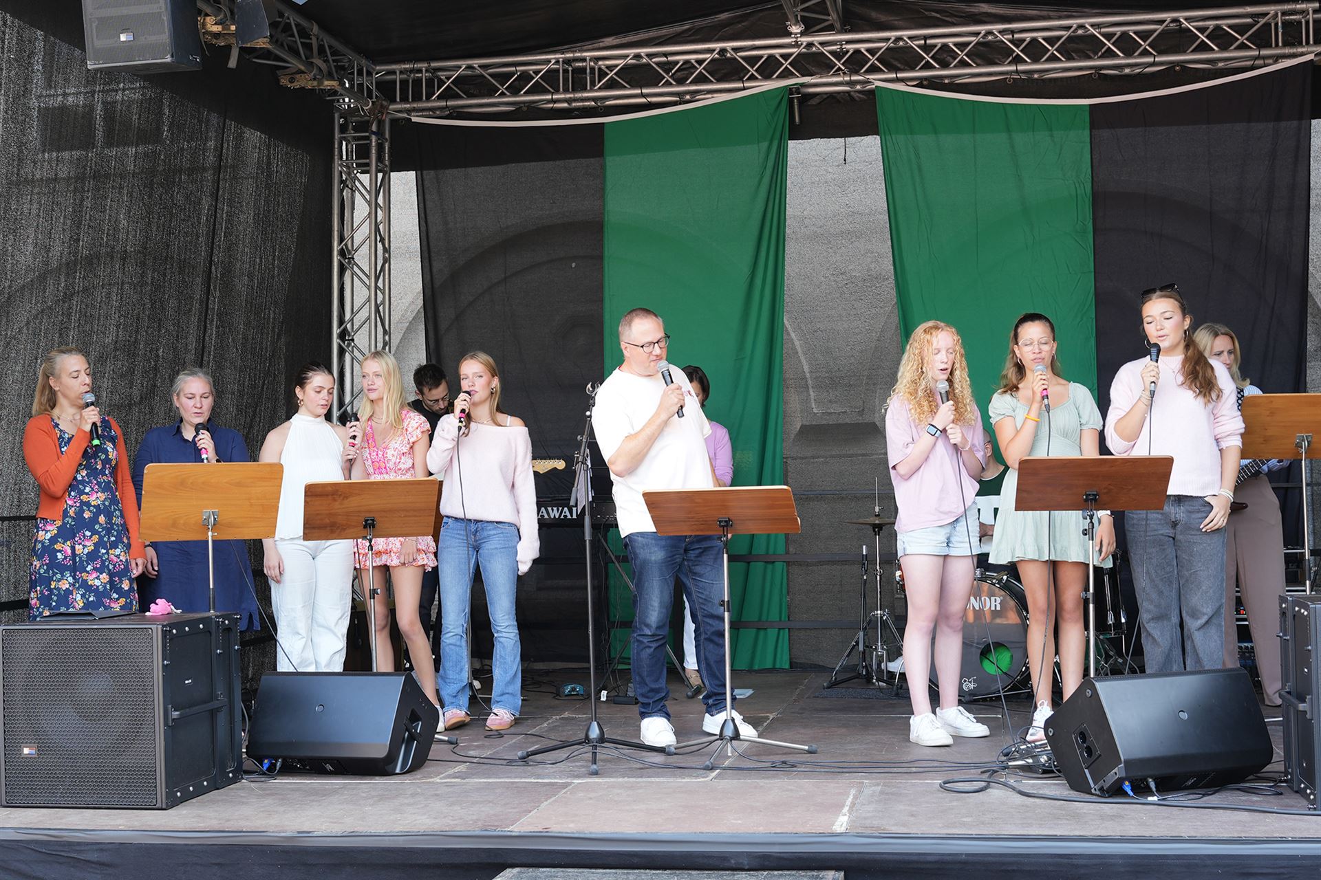 Highlights des Bühnenprogramms waren der Auftritt der Projekt-Band, der Goethespatzen, der Projektgruppe des Trommelworkshops, der Lesung aus dem Workshop für kreative Texte.