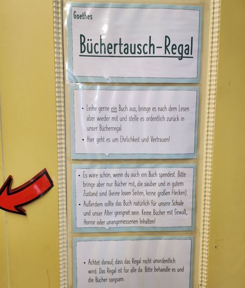 Im gelben Zimmer unserer Schule haben wir einen Bücherschrank eingerichtet, der eine wunderbare Möglichkeit bietet, Bücher auszuleihen, zu tauschen und die Leselust zu entdecken oder weiter zu vertiefen.