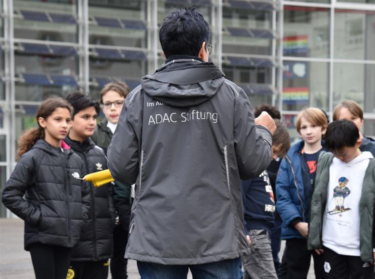 Kinder sind noch nicht in der Lage, die Geschwindigkeit und den Bremsweg eines Fahrzeugs richtig einzuschätzen. Mit dem Programm „Achtung Auto“ lernen Schüler dies auf spielerische Art und Weise und erleben in praktischen Übungen und Selbstversuchen, was die Formel Reaktionsweg + Bremsweg = Anhalteweg genau bedeutet und werden so für die Gefahren im Straßenverkehr sensibilisiert, um sie künftig besser einschätzen zu können. Speziell ausgebildete Moderatoren der ADAC Stiftung führen die Schüler mit viel Spaß und Spannung – einprägsam und interaktiv – an dieses wichtige Thema heran.“