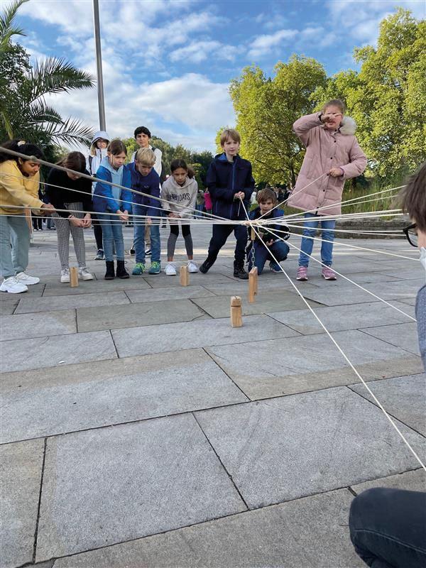 Jedoch gibt es auch lebendigen Unterricht jenseits des eigenen Klassenraums, so bei gutem Wetter in unseren vielen grünen Klassenzimmern auf dem Schulhof, im Schulgarten oder bei Exkursionen, um den rhythmisierten Tagesablauf einmal zu unterbrechen und schulisches Leben und Lernen in Balance zu halten.