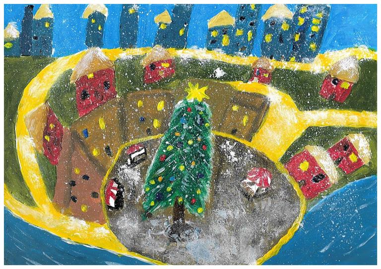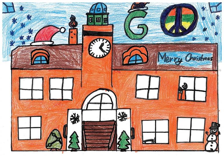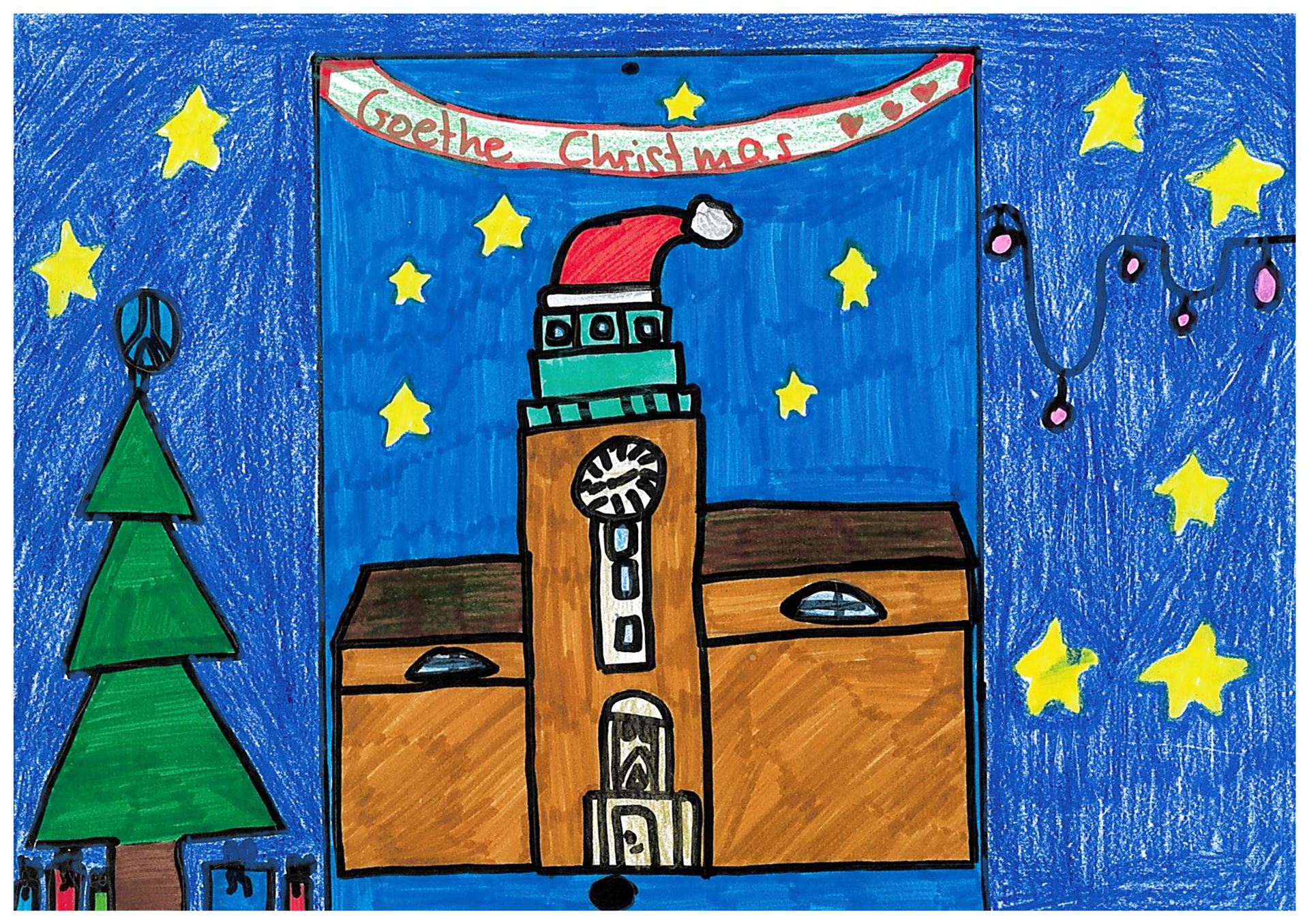Für die 5. Klassen ist die Vorweihnachtszeit jedes Jahr der spannende Auftakt zu einem jährlichen Wettbewerb. Es gilt für die Fünftklässler das Bild der Weihnachtskarte der Goetheschule zu gestalten, die bis weit über die Grenzen Essens hinaus verschickt wird. Bis Anfang Dezember kommen dutzende Werke der jungen Künstlerinnen und Künstler in der Verwaltung an. Es kann gezeichnet, gemalt, geklebt werden, der Kreativität sind keine Grenzen gesetzt. Beliebte Motive sind immer wieder ganz weihnachtlich angeregt der geschmückte Tannenbaum, Wichtel oder der Rentierschlitten mit dem Weihnachtsmann. Unangefochten führt jedoch das weihnachtlich geschmückte Schulgebäude die Liste aller kreativen Ausführungen an. Die Goetheschule im festlichen Glanz, das Schulgebäude in einer Schneekugel oder gar als Lebkuchenhaus. Unverkennbar aber immer wieder auch das Schulwahrzeichen, der Turm, mal als Landeplatz für den Weihnachtsmann, mal ganz schlicht mit Weihnachtsmütze.