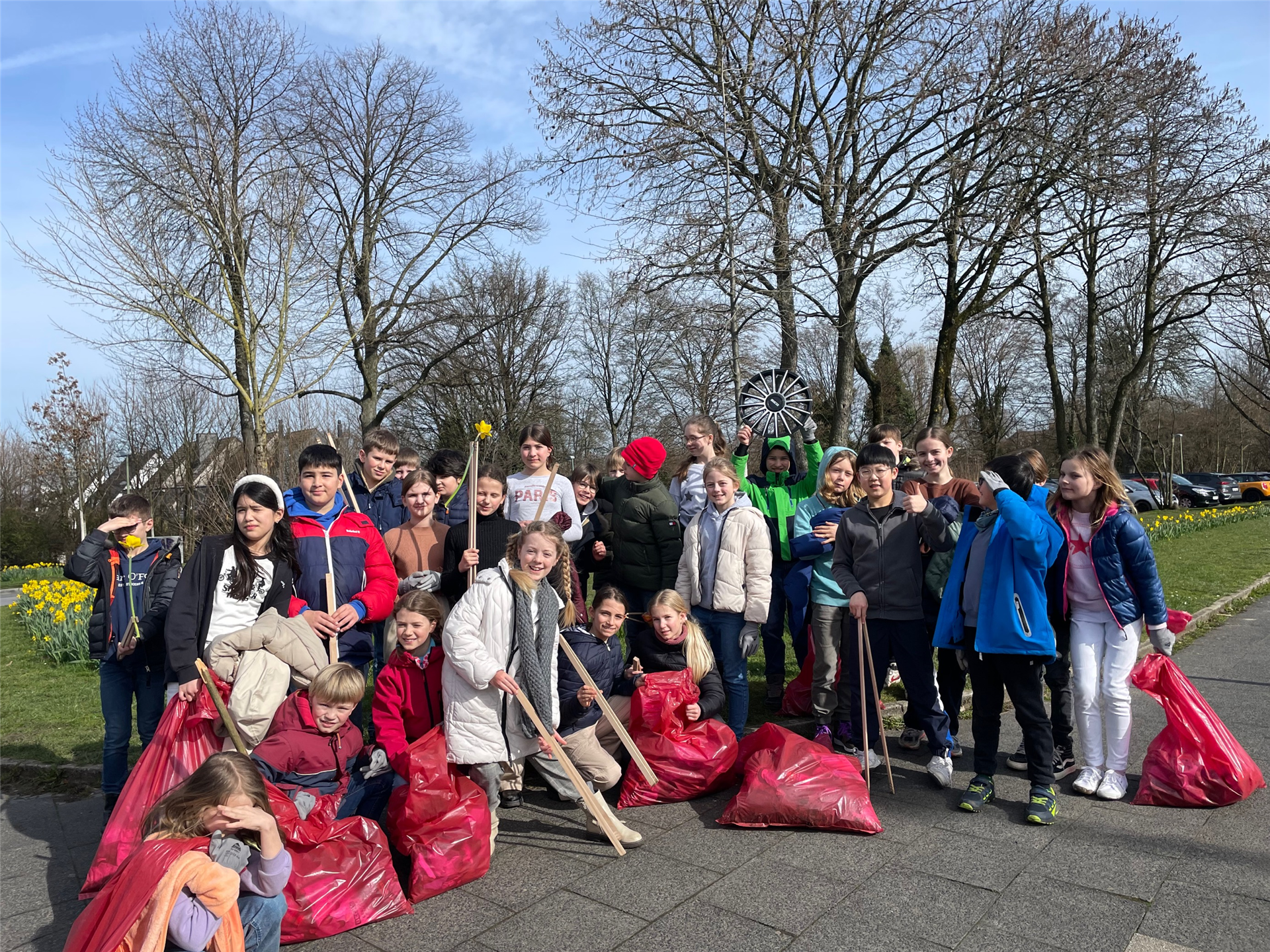 Traditionell nimmt die Goetheschule jedes Jahr an der städtischen Aufräumaktion SauberZauber teil. Ausgestattet mit Müllsäcken, Handschuhen, Zangen machen sich die Schülerinnen und Schüler auf, den Stadtteil und das schulische Umfeld gemeinsam zu säubern und somit aktiv lebens- und liebenswerter zu machen. Nachhaltiges Handeln ist ein zentraler Bestandteil unserer schulischen Erziehung und gemeinsam setzen wir ein Zeichen, dass Müll nicht in unsere Umwelt, sondern ordentlich entsorgt gehört. Damit steht auch der SauberZauber- Tag als Teamengagement und wichtige gemeinnützige Aktion für alle Fünftklässler jedes Jahr im Frühjahr an. Mit der Aufräumaktion soll ein generelles Bewusstsein für Umwelt und Müllvermeidung geschaffen bzw. gestärkt werden und mit viel Spaß sind die Schülerinnen und Schüler bei der Sache.
