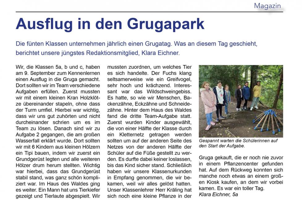 Unsere Klassen der Jahrgangsstufe 5 verbringen kurz vor den Herbstferien einen spannenden und lehrreichen Tag im Gruga-Park. Das Biologische Bildungszentrum „Schule Natur“ des Gruga- Parks lädt die Fünftklässler mit ihrem Klassenleiterteam ein, die heimische Flora und Fauna kennenzulernen. Aber nicht nur das Lernen steht bei diesem Ausflug im Fokus, sondern das Entdecken und Mitmachen ebenso wie jede Menge Spaß an diesem Tag. Auf einem Parcours von mehreren Stationen wird innerhalb von mehreren Stunden eine Kombination von Bewegungs- und Wissensspielen absolviert.